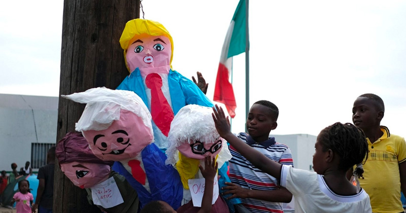 Piñatas de AMLO y Trump fueron quemadas en Chiapas por migrantes que piden no ser deportados
