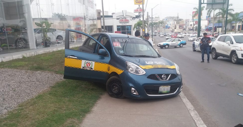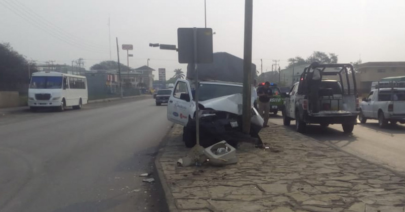 El carro del transporte público por poco y se mete a una agencia de carros tras ser chocado