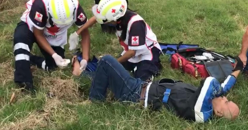 Motociclista es derribado por una conductora que al principio se detuvo para responder por sus actos, pero después de un rato prefirió retirarse del lugar y abandonar al herido.