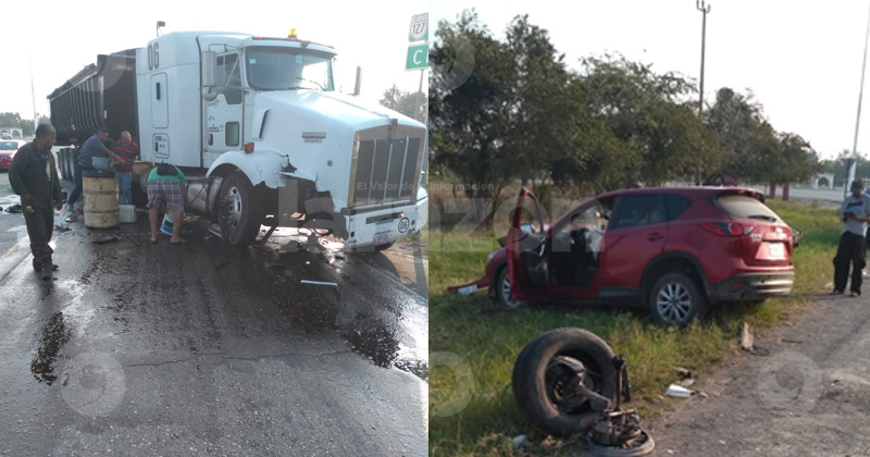 Trailer destroza auto, muerte perdona a mujer