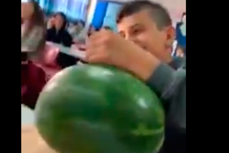 Maestra da permiso de comer fruta en clase y alumno saca una sandía (video)