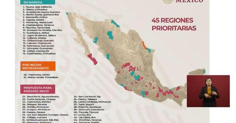 Alfonso Durazo, secretario de Seguridad expuso las 45 regiones prioritarias, pertenecientes a 26 estados
