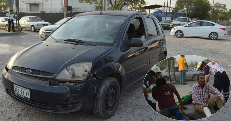 Padre e hijo resultan con heridas de consideración luego que el conductor de un Ford Fiesta rebasó el alto y les pegó