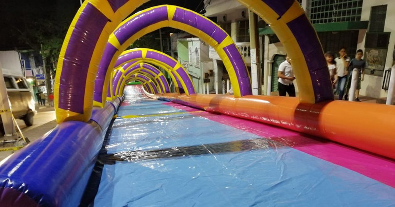 Colocan albercas y toboganes por 10 mdp en calles de Villahermosa