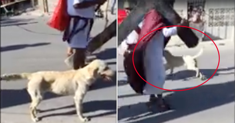 Perrito callejero defiende a Jesús de latigazos durante Pasión de Cristo