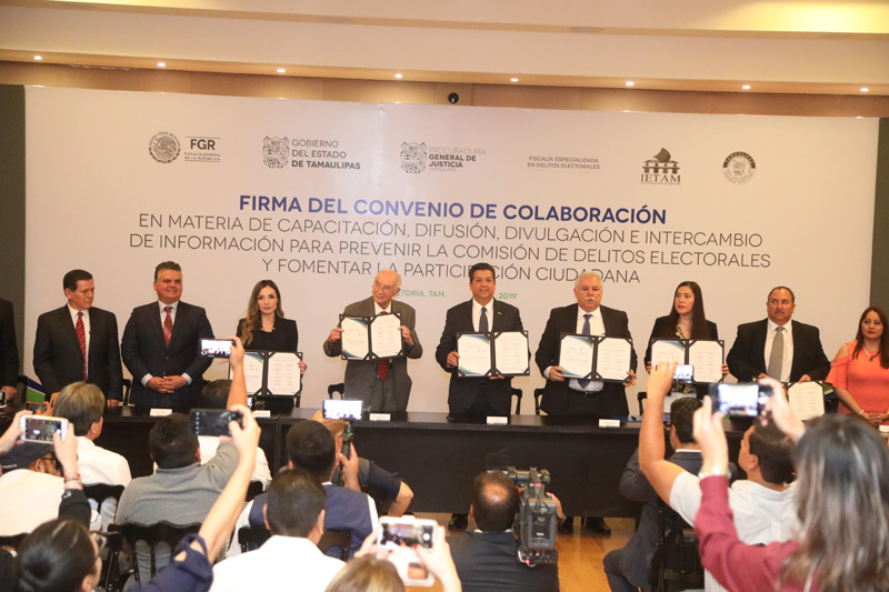 El gobernador Francisco García Cabeza de Vaca y el titular de la FEPADE, José Agustín Pincheti, suscriben un convenio, para prevenir delitos electorales y promover la participación ciudadana