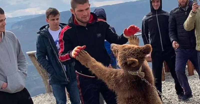 Luchador de la UFC y su grupo de amigos “pelean” contra oso encadenado