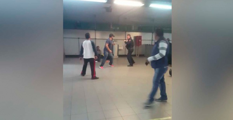 Un elemento de la Policía Bancaria e Industrial fue agredido por un sujeto, al parecer vendedor ambulante, que era desalojado de las instalaciones del Metro
