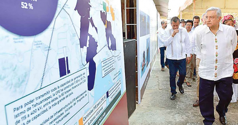 El Presidente agregó que se está avanzando en el proyecto transístmico, que incluye la construcción del tren consultado, con la participación mixta del gobierno, la iniciativa privada y el sector social, que son los dueños de la tierra, donde se instalarán los centros de producción, en una franja de desarrollo de 220 kilómetros en línea recta, que incluye Minatitlán y Coatzacoalcos, en Veracruz, y Matías Romero, Juchitán y Salina Cruz, en Oaxaca.