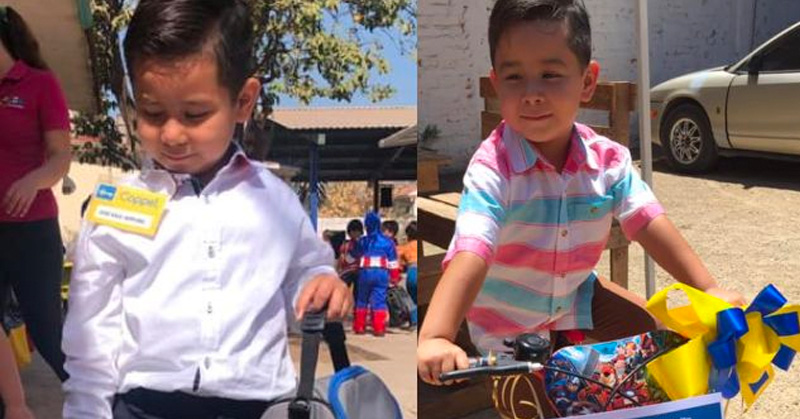 Niño se disfraza de gerente de Coppel y le regalan una bici