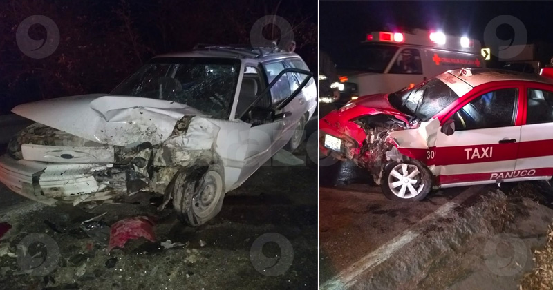 Se impactan de frente taxi y vagoneta.