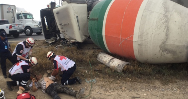 El conductor de la pesada unidad resultó con heridas graves, luego que la cabina del camión con revolvedora que conducía lo aplastó
