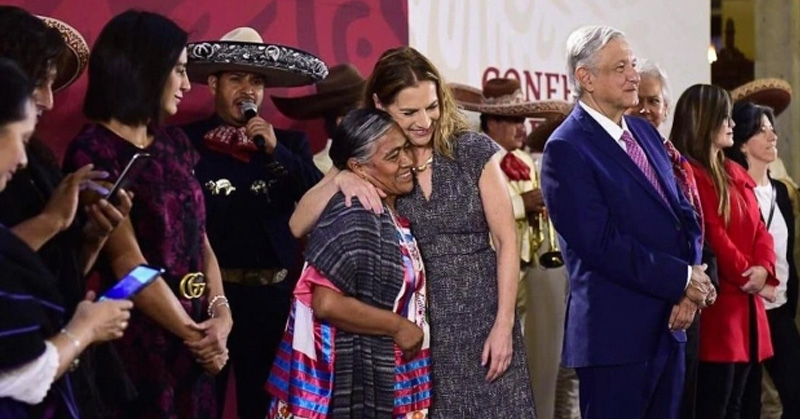 Tras concluir su acostumbrada conferencia de prensa, varias mamás que fueron invitadas tomaron el micrófono para hablar