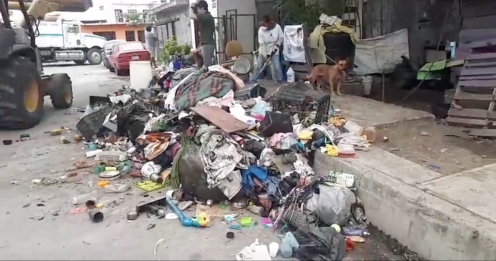 Una retroexcavadora y dos camiones de volteo no fueron suficientes para desechar la gran cantidad de basura que la señora tenía dentro de su domicilio, donde los jóvenes trabajaron durante la mañana y tarde del sábado para sacar todo a la calle.