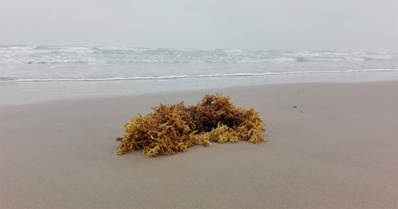 El sargazo que empezó a detectarse desde la mañana de este lunes, se extiende por los ocho kilómetros de playa.