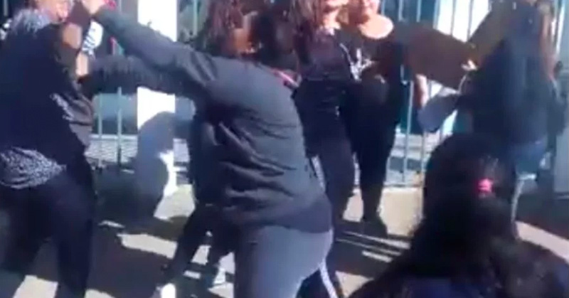 Una violenta pelea entre madres fue captada a las afueras de un kinder en Argentina.