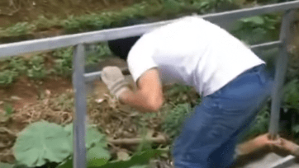 Al principio el hombre intenta sacar la cabeza desde diferentes ángulos, pero todo es en vano
