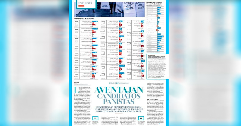 Una encuesta publicada por El Heraldo de México revela que en 18 de los 22 distritos en competencia tienen preferencia electoral los candidatos del PAN.