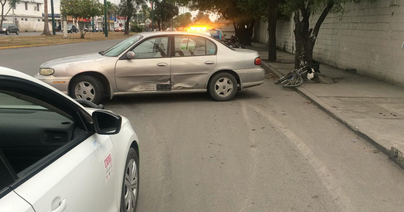 Automovilista trata de ganarle al amarillo del semáforo en el 19 Bulevar López Mateos pero no lo logra: provoca percance y para acabarla se llevó de corbata a un ciclista