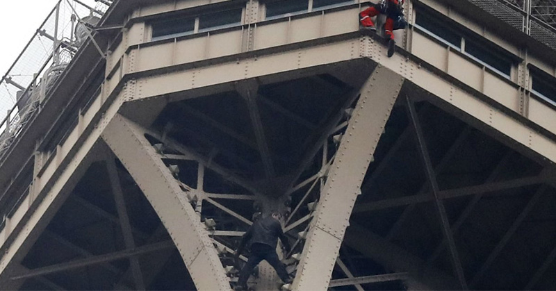 Arrestan a hombre que escaló la Torre Eiffel y se atrincheró por seis horas