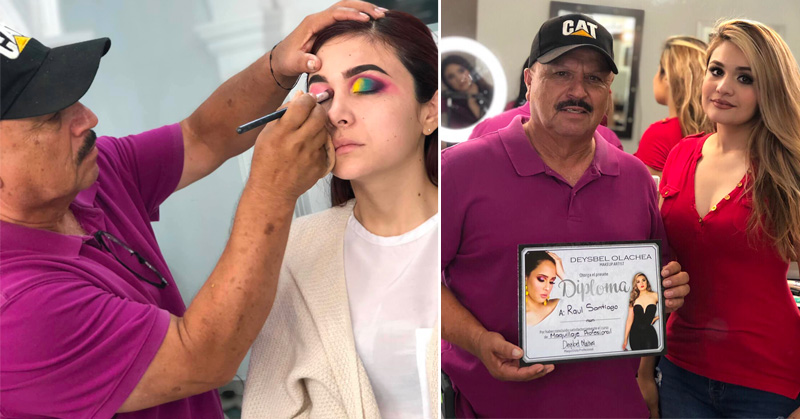 Tierno vendedor de cosméticos toma curso de maquillaje