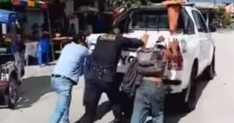 Debido a la patrulla se descompuso, el policía pidió ayuda para empujar a un ladrón y a su víctima