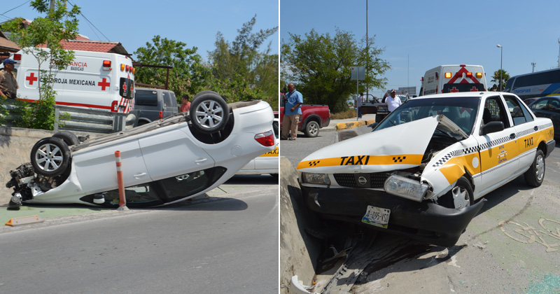 Automovilista venía tranquilamente bajando por el bulevar Fidel Velázquez y de repente un taxi se le atravesó provocando un choque y volcadura
