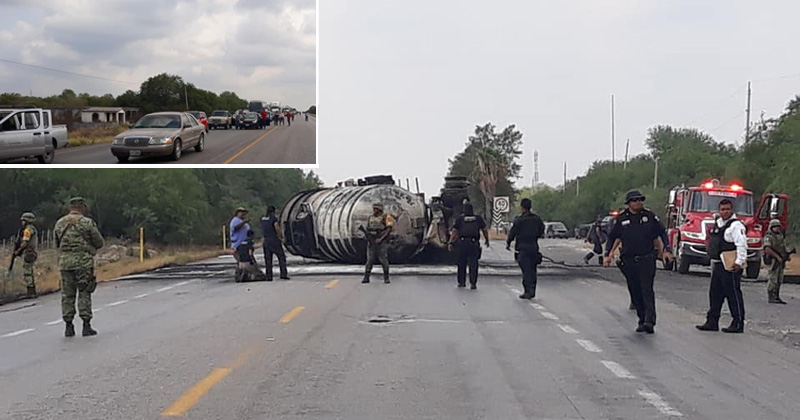 Auto tanque cargado con 31 mil litros de gasolina, que se incendió sobre la carretera federal Matamoros-Victoria.