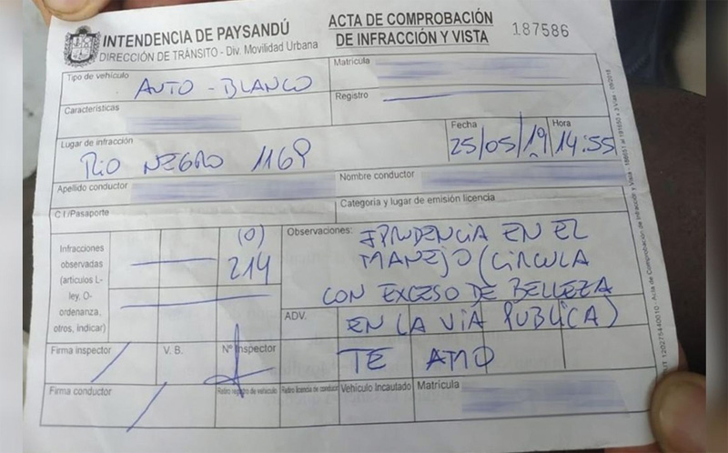 El oficial de tránsito de Uruguay fue sancionado por levantar la inapropiada infracción