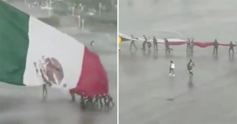 Mexicanos ayudaron a militares a bajar la bandera en medio de una tormenta