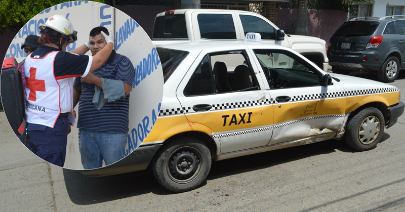 Motociclista se llevó no uno, sino dos fuertes golpes al chocar con un taxi y después contra el pavimento por omitir un alto: no llevar protegida la cabeza le ameritó su ingreso al hospital