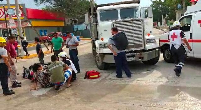 Lesionada motociclista al chocar contra camión