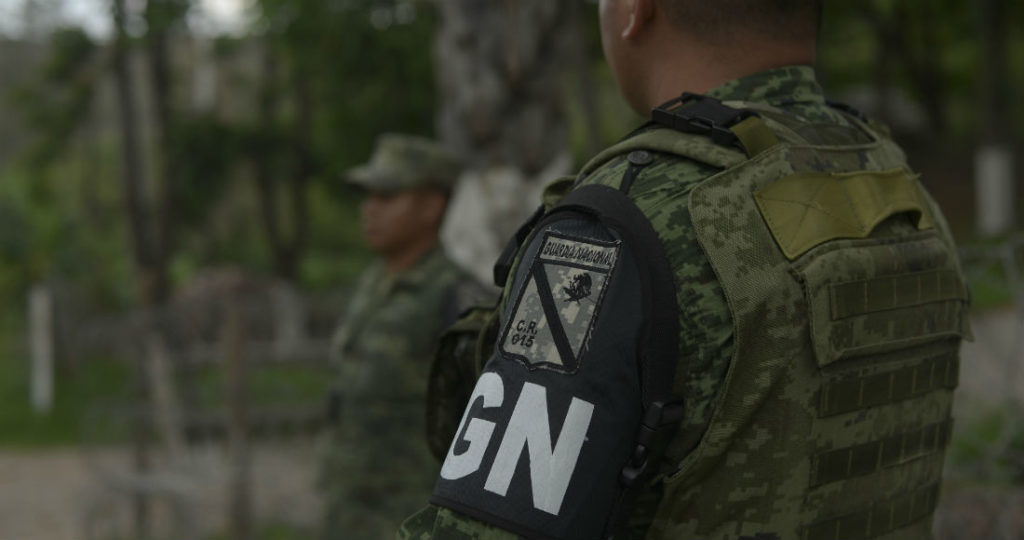 Integrantes de la Guardia Nacional mantienen un retén sobre la carretera Comalapa -Comitan como parte del cumplimiento de los acuerdos que el Gobierno mexicano pactó con Estados Unidos, en el cual México deberá en 45 días disminuir el flujo migratorio para que el Gobierno estadounidense no incrementará los aranceles