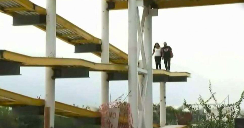 Peatones se arriesgan y cruzan puente inconcluso en Monterrey