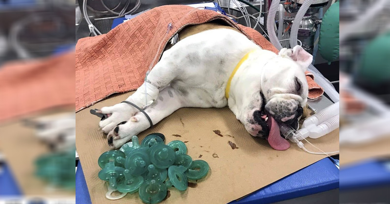 Veterinarios remueven 19 chupones del estómago de un perro bulldog