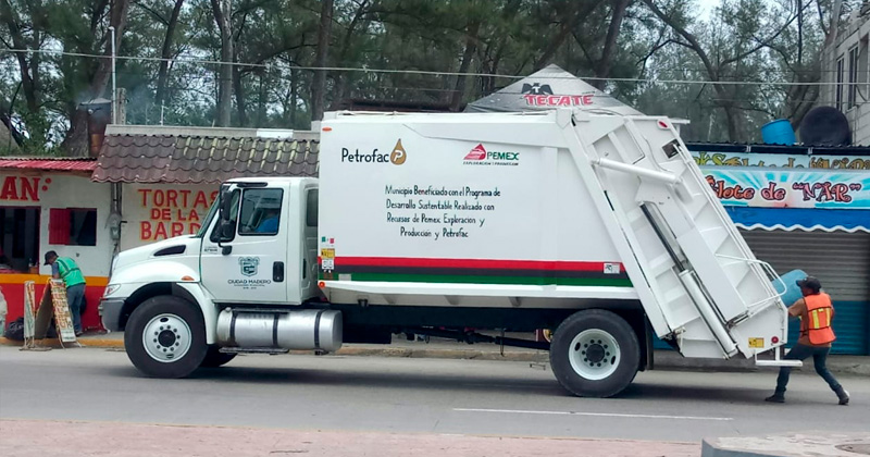 Petróleos Mexicanos y la empresa Petrofac, le donaron al ayuntamiento de Ciudad Madero un camión recolector de basura, el cual estará asignado provisionalmente a Playa Miramar.