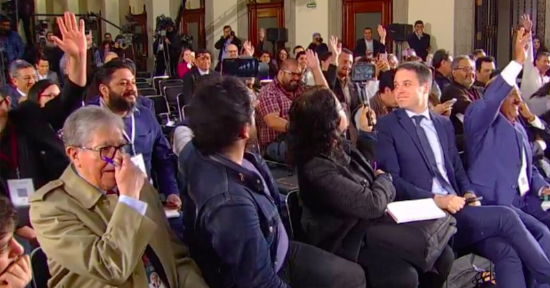 A “mano alzada” reporteros votan por cancelar la ‘mañanera’ de AMLO del lunes