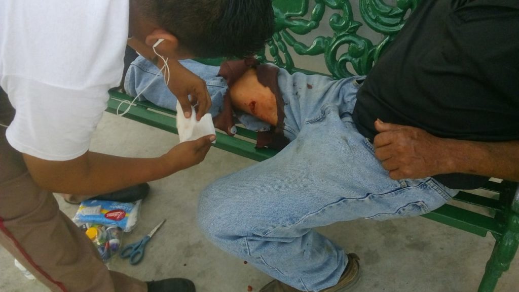 afectado un dedo de la mano derecha. Procediendo inmediatamente por parte del personal de Bomberos al llamado de la Cruz Roja Mexicana, arribando a las 19:40 hrs. al mando de la paramédico Itzel Salazar dándoles atención Medica Pre hospitalaria para ser trasladado a las 19.50 hrs. al Hospital Canseco para su valoración respectiva.