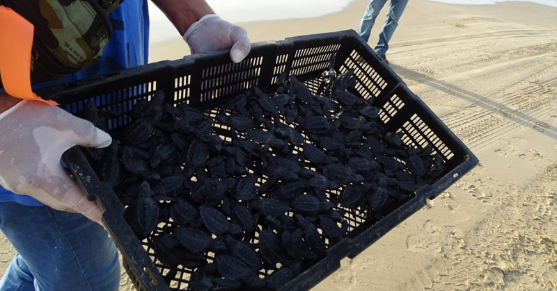 Liberan crías de tortuga Lora en Playa Tesoro
