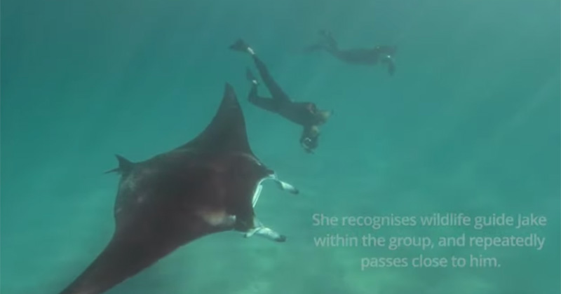 Mantarraya gigante se acerca a un buceador para pedir que le salve la vida