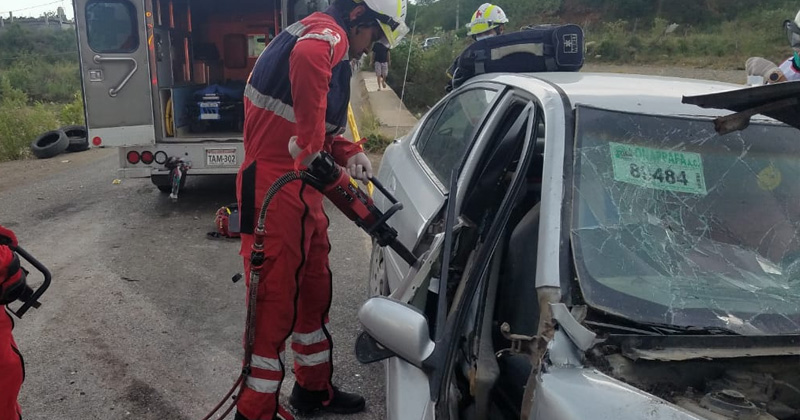 Conductor ebrio se estrella contra una unidad dedicada a poner señalamientos en la carretera: por lo fuerte del choque queda prensado dentro de su vehículo y tuvo que ser extraído con equipo neumático