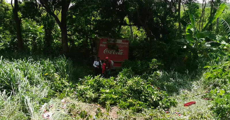 Cae a barranco camión de la coca, chofer herido