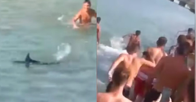 Viajeros se asustan al ver al pez y al confundirlo, tratan de atraparlo para atacarlo con piedras y matarlo.