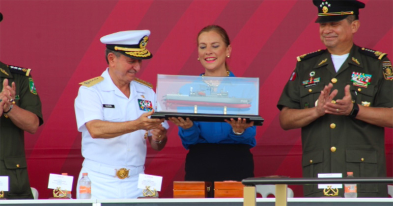 La primera dama de México, Beatriz Gutiérrez, estuvo en astilleros de Marina para ser la madrina de la botadura de la patrulla Oceánica.