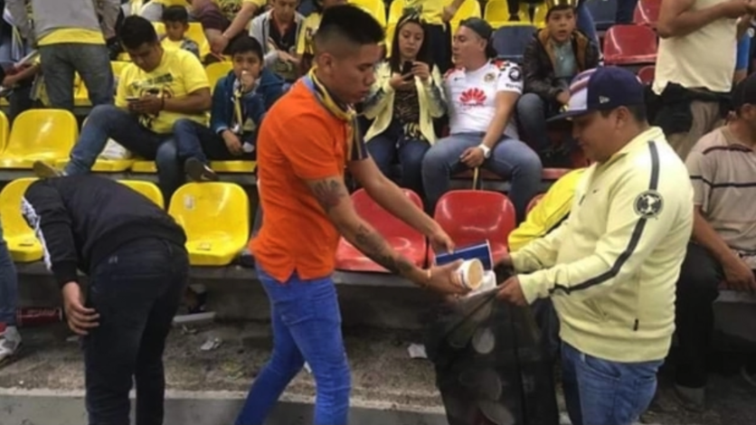 Aficionados del América limpian el Estadio Azteca después de un partido