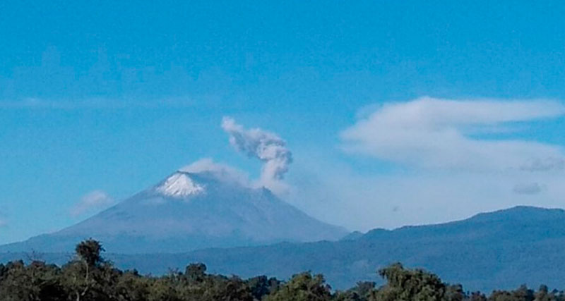 Exhalación del Popocatépetl genera columna de ceniza de 1.5 kilómetros