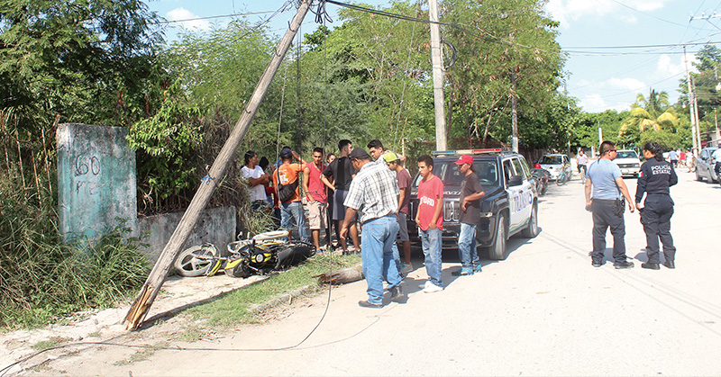 Menor de 15 años de edad muere a pocos minutos de haber chocado su motocicleta contra un poste de madera el cual partió en dos en la colonia Núñez