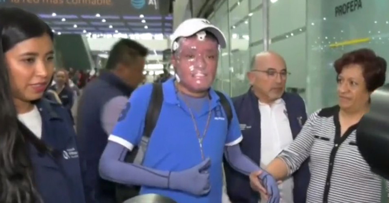 Luego de 6 meses hospitalizado en Texas, Emmanuel Mendoza, joven de 18 años que sobrevivió a la explosión de Tlahuelilpan, regresó a México.