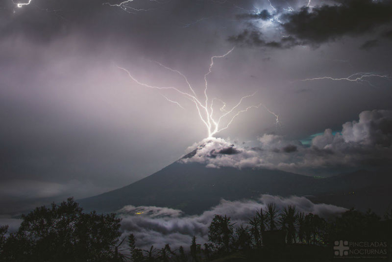 Tormenta eléctrica sobre volcán en Guatemala genera espectáculo de luces