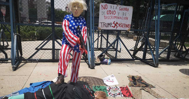 Los manifestantes llegaron al edificio, ubicado en Paseo de la Reforma, para expresar su rechazo a las políticas del presidente estadunidense, Donald Trump.